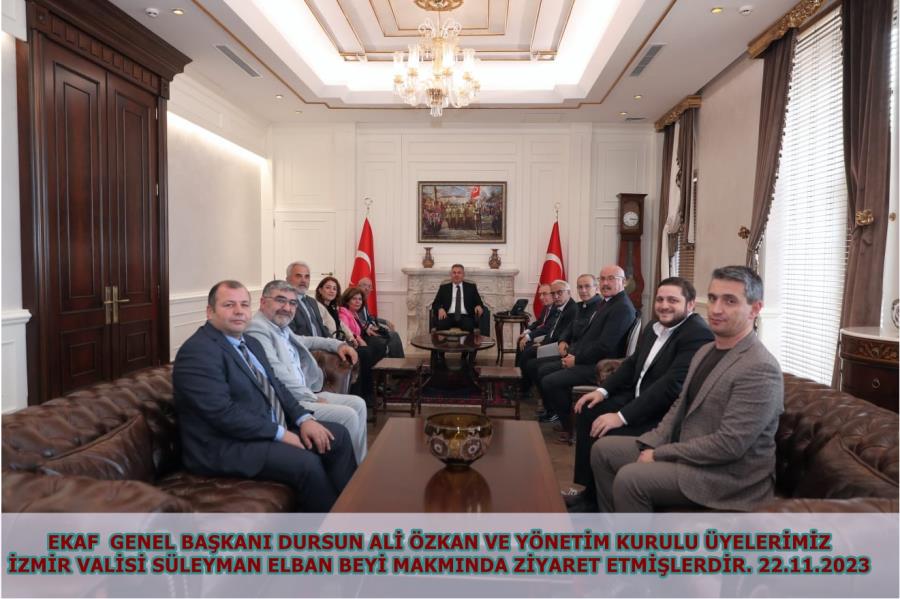 EKAF Genel Başkanı Dursun Ali Özkan başkanlığında ki heyet ( Genel Sekreter Cahit Genç, Genel Başkan Yrd. Nuri Çakıral, Genel Başkan Yrd. Kahraman Demirbaş, Genel Başkan Yrd.Mehmet Nar, Genel Başkan Yrd İsmail Genç, Genel Başkan Yrd. Havva Işık, Genel Sayman Yd. Hamdi Yavuz, Yönetim Kurulu Üyesi Aydoğan Civelek, ve Yönetim Kurul Üyesi Sevda Öztürk ), İzmir Valimiz Sayın Süleyman Elban beyi makamında ziyaret etmişlerdir. Sıcak bir ortamda gerçekleşen görüşmede İzmir valimiz Sayın Süleyman Elban beyin 38 yıl önce Türkçe öretmeni ve Genel Başkanımızın kardeşi olan Kemal Özkan bey de toplantıda bulunmuşlardır. Sayın valimiz öğretmenini 38 yıl sonra tereddütsüz tanımış okul yılları anılarını paylaşmışlardır. Ayrıca Kaymakamlık görevi dönemlerinde Karadenizde görev yaptığını ve Karadenizlilerle sıcak ilişkileri olduğunu ifade etmiştir. Sayın Valimiz Süleyman Elban bey EKAF'ın yeni yönetimine başarılar dilemişlerdir.